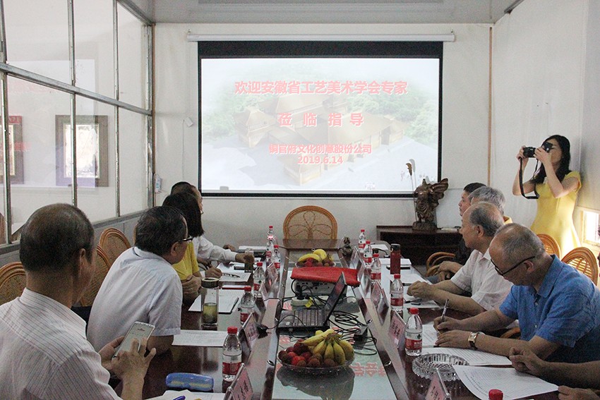 6月14日,安徽省工藝美術(shù)學(xué)會7位知名專家學(xué)者,及銅陵市科協(xié)、銅官區(qū)科協(xié)領(lǐng)導(dǎo),齊聚銅陵銅官府文化創(chuàng)意股份公司,共同見證《安徽省工藝美術(shù)學(xué)會科技服務(wù)站》授牌和《創(chuàng)新驅(qū)動工程技術(shù)合作》簽約儀式活動。